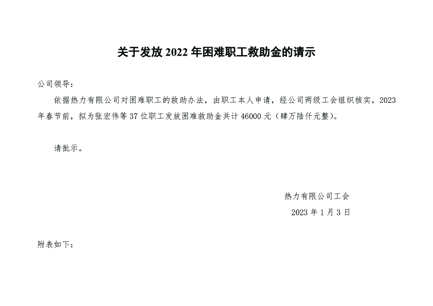 關(guān)于發(fā)放2022年困難職工救助金的請(qǐng)示